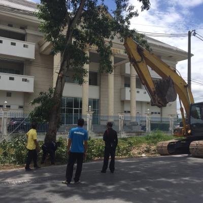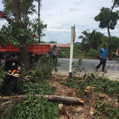 กองช่าง อบจ.สงขลา ตัดต้นไม้ที่กีดขวางการจราจรพร้อมปรับพื้นที่ถนนสายติณสูลานนท์