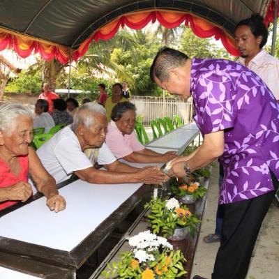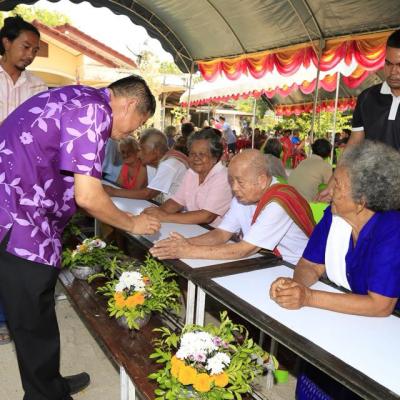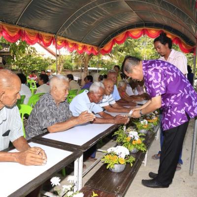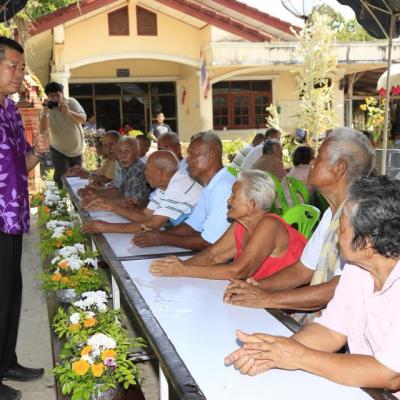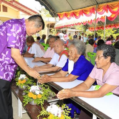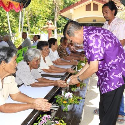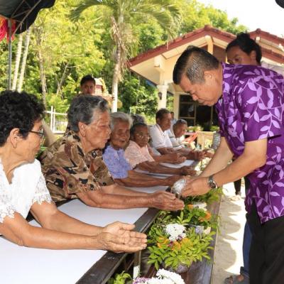 นายก อบจ.สงขลา ร่วมในพิธีรดน้ำดำหัวและขอพรผู้สูงอายุในชุมชนบ้านหมู่ที่ 5 ตำบลท่านางหอม