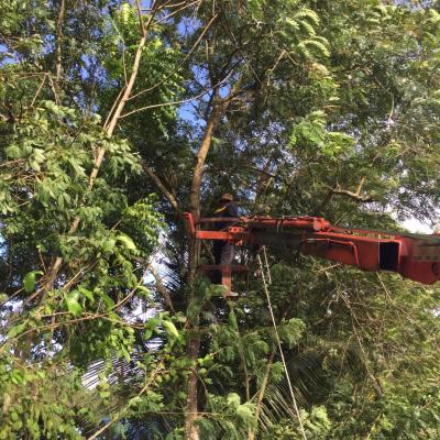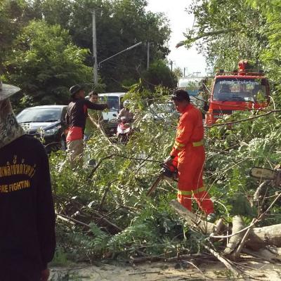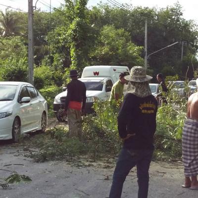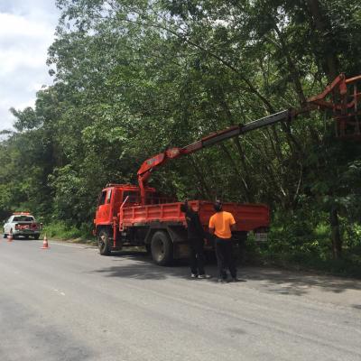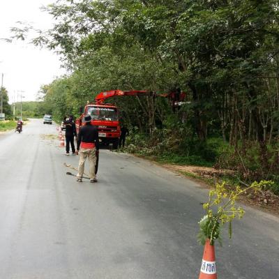 กองช่าง อบจ.สงขลา ลงพื้นที่ตัดต้นไม้ที่กีดขวางจราจร ถนนสายควนเนียง - บางเหรียง อ.ควนเนียง จ.สงขลา