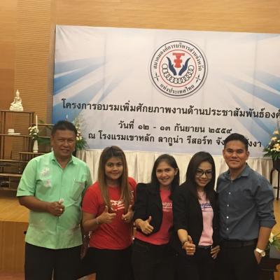 เมื่อวันที่ 13 กันยายน 2559 นายธนกร จันทร์สว่าง รองนายกองค์การบริหารส่วนจังหวัดสงขลา พร้อมด้วยนายอัฐชัย พรหมมณี รองปลัดองค์การบริหารส่วนจังหวัด และเจ้าหน้าที่ฝ่ายประชาสัมพันธ์ องค์การบริหารส่วนจังหวัดสงขลา เข้าร่วมอบรมเพิ่มศักยภาพงานด้านการประชาสัมพันธ์องค์กร ณ โรงแรมเขาหลัก ลากูน่า รีสอร์ท อำเภอตะกั่วป่า จังหวัดพังงา ซึ่งจัดโดยสมาคมองค์การบริหารส่วนจังหวัดแห่งประเทศไทย โดยมีนายบำรุง ปิยนามวานิช นายกองค์การบริหารส่วนจังหวัดพังงา ในฐานะประธานสมาพันธ์องค์การบริหารส่วนจังหวัดภาคใต้ เป็นประธานในพิธีเปิดการอบรม ซึ่งมีบุคลากรองค์การบริหารส่วนจังหวัดที่รับผิดชอบงานด้านการประชาสัมพันธ์จาก 14 จังหวัดภาคใต้ เข้าร่วมอบรมฯ เพื่อเพิ่มประสิทธิภาพขององค์กรในด้านการประชาสัมพันธ์ และเชื่อมโยงงานด้านการประชาสัมพันธ์ของสมาคม สมาพันธ์องค์การบริหารส่วนจังหวัดภาคใต้ รวมทั้งเพิ่มทักษะความรู้ให้แก่บุคลากรองค์การบริหารส่วนจังหวัดด้านการประชาสัมพันธ์ และศิลปะในการพูดต่อหน้าสาธารณะ ตลอดจนการขยายการประชาสัมพันธ์ขององค์กรสู่สื่อสาธารณะได้กว้างขวางขึ้น