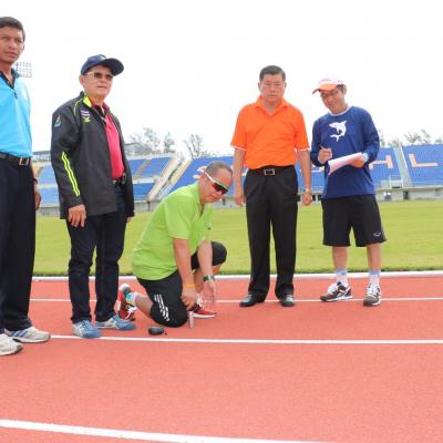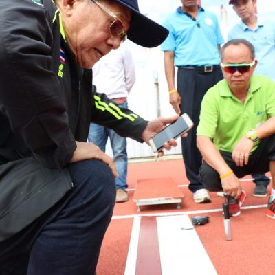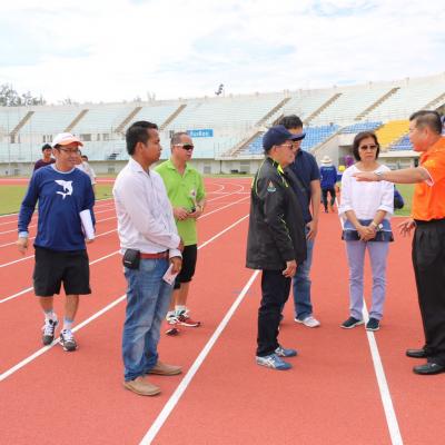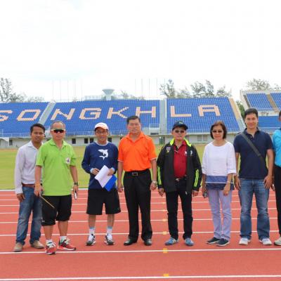 นายนิพนธ์ บุญญามณี นายก อบจ.สงขลา ให้การต้อนรับ พลตำรวจตรี สุรพงษ์ อาริยะมงคล อุปนายกและเลขาธิการ สมาคมกรีฑาแห่งประเทศไทย ในพระบรมราชูปถัมภ์ และคณะกรรมการสมาคมฯ ในโอกาสเดินทางมาตรวจ สนามลู่วิ่งในสนามกีฬาติณสูลานนท์ ซึ่งจะใช้เป็นสนามหลักในการแข่งขันกรีฑา ของการแข่งขันกีฬาแห่งชาติครั้งที่ 45 ซึ่งจังหวัดสงขลาเป็นเจ้าภาพในระหว่างวันที่ 20 มิถุนายนถึง 30 มิถุนายน 2560 ซึ่งทางสมาคมได้ให้การรับรองสนามลู่วิ่งยางของสนามกีฬาติณสูลานนท์ จังหวัดสงขลา โดยอุปนายกสมาคมและเลขาธิการสมาคมฯกล่าวว่า จากสภาพทั่วไปถือว่าเป็นสนามที่ใหญ่สุดในภาคใต้ ซึ่งขณะนี้เจ้าหน้าที่อยู่ในระหว่างการตรวจสอบรับรอง จากการวัดความลึกของผิวยางลู่วิ่ง และวัดระยะความกว้างความยาวของลู่วิ่ง โดยรอบสนามถือว่าได้มาตรฐาน และสนามนี้ยังสามารถที่จะใช้สำหรับการแข่งขันกรีฑาระดับนานาชาติได้อีกด้วย