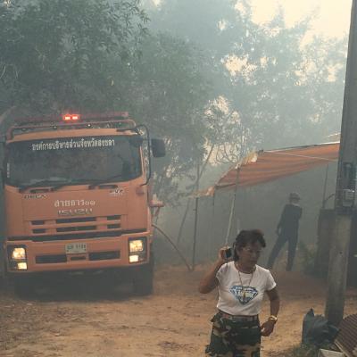 ผอ.กองช่าง ควบคุมรถดับเพลิง จำนวน 2 คัน รถบรรทุกน้ำดับเพลิง 1 คัน สนับสนุนเหตุไฟไหม้ป่า ทต.พะวง