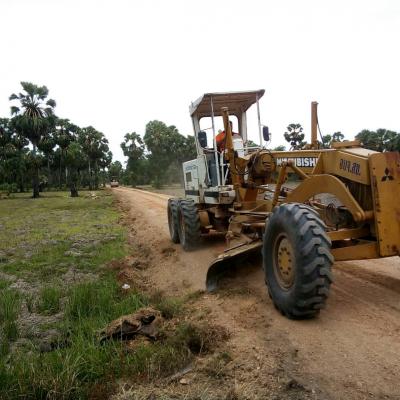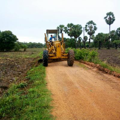 กองช่างลงพื้นที่โดยนำเครื่องจักรกลชุดเกรดปรับปรุงซ่อมแซมถนนลูกรัง สายคอกเป็ด หมู่ 2