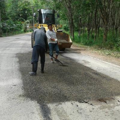 กองช่าง อบจ.สงขลา ลงพื้นที่ซ่อมแซมถนนลาดยาง สายบ้านป่ายาง - บ้านควนหัวแหวน