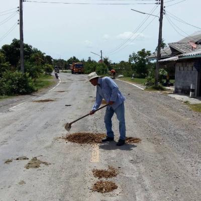กองช่างลงพื้นที่ซ่อมแซมถนนที่เป็นหลุมเป็นบ่อ สายบ้านโตนดด้วน - บ้านท่าคุระ