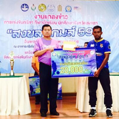 4 ส.ค.59 (16.00 น.) นายนิพนธ์ บุญญามณี นายก อบจ.สงขลา และในฐานะนายกสมาคมกีฬาแห่งจังหวัดสงขลา เป็นประธานการแถลงข่าว การแข่งขันกรีฑานักเรียน นักศึกษาจังหวัดสงขลา สงขลาเกมส์ เพื่อเตรียมความพร้อมการเป็นเจ้าภาพ จัดการแข่งขันกีฬาแห่งชาติ และกีฬาคนพิการ 2560 พร้อมมอบถ้วยรางวัล เงินรางวัล และงบพัฒนาท้องถิ่น จากการแข่งขันฟุตบอลประชาชนสงขลาคัพ ถ้วย ก.และ ถ้วย ข. ต้านภัยยาเสพติดประจำปี 2559 ณ อาคารศรีเกียรติพัฒน์ อบจ.สงขลา โดยมี ท่องเที่ยวและกีฬาจังหวัดสงขลา ผอ.สพม.ที่16 พร้อมด้วย ผอ.สพถ.เขต1 ปฏิบัติหน้าที่ศึกษาธิการจังหวัดสงขลา ร่วมแถลงข่าว และสมาชิกสภา อบจ.สงขลา เข้าร่วมในพิธี พร้อมด้วยนักกีฬาฟุตบอลจาก 16 อำเภอในจังหวัดสงขลา เข้าร่วมและรับรางวัล โดยแชมป์ถ้วย ก.ได้แก่ อำเภอหาดใหญ่ รับถ้วยรางวัลพร้อมเงินจำนวน 300,000 บาท และงบพัฒนาอีก 6 ล้านบาทต่อจากนั้นได้มีการแถลงข่าวการแข่งขันกรีฑานักเรียน นักศึกษาประจำปี 2559 โดยทาง สงขลา ได้ร่วมกับหน่วยงานกีฬา ทางการศึกษาต่างๆในจังหวัดสงขลา ซึ่งทาง อบจ.สงขลาได้สนับสนุนงบประมาณในการจัดการแข่งขัน 1.3 ล้านบาท พร้อมทั้งสมาคมกีฬาสงขลา สนับสนุนการจัดการแข่งขันกีฬาอีก 7 ชนิดกีฬา และงบจากหน่วยงานต่างๆอีก 2 ล้านสี่แสน บาท ทั้งนี้เพื่อเป็นการส่งเสริมให้นักเรียนได้เล่นกีฬา เพื่อเตรียมความพร้อมและ เพื่อการพัฒนากีฬา ในด้านความเป็นเลิศของกีฬา และจะเป็นการซ้อมใหญ่เตรียมรับงาน ซึ่งจังหวัดสงขลา ได้รับเกียรติเป็นเจ้าภาพในการจัดการแข่งขันกีฬาแห่งชาติ และกีฬาคนพิการแห่งชาติในปี 2560 ซึ่งก็จะเป็นแรงจูงใจให้สงขลา เป็นเมืองแห่งกีฬาในอนาคต โดยการแข่งขันกรีฑานักเรียน นักศึกษาจะทำการแข่งขันระหว่างวันที่ 23 - 26 สิงหาคม 2559 ณ สนามจิระนครหาดใหญ่ทั้งนี้การพัฒนากีฬาถือเป็นพื้นฐานของการพัฒนาชาติ ซึ่งขณะนี้เรามีสนามพร้อมในการแข่งขันแต่ละประเภทชนิดกีฬา