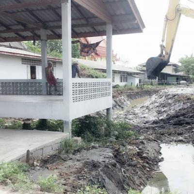 กองช่าง อบจ.สงขลา ลงพื้นที่ขุดลอกคู บริเวณหลังโรงเรียนวัดคูขุด หมู่ 4 ต.คูขุด อ.สทิงพระ จ.สงขลา