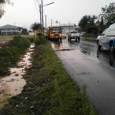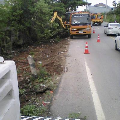 กองช่าง อบจ.สงขลา ลงพื้นที่ปรับปรุงภูมิทัศน์สองข้างทางสายติณสูลานนท์