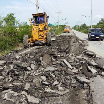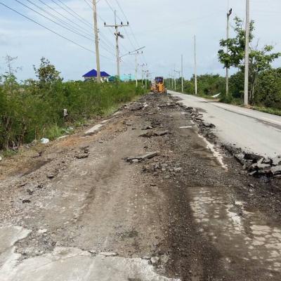 กองช่าง อบจ.สงขลา ลงพื้นที่ซ่อมผิวถนนสายบ้านท่าเข็น บ้านแดนสงวน ช่วง กม. 1 - 3