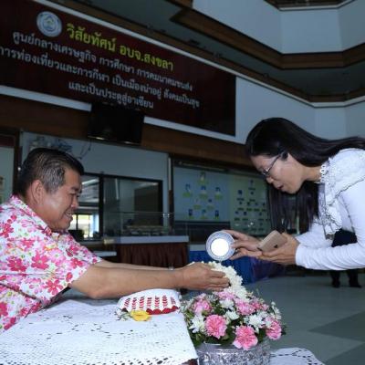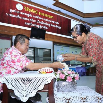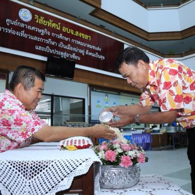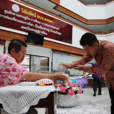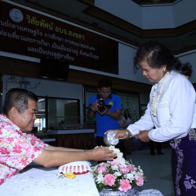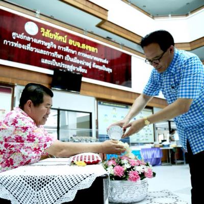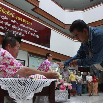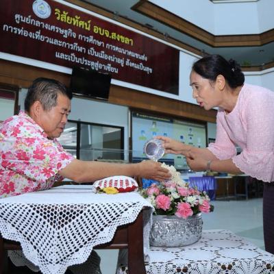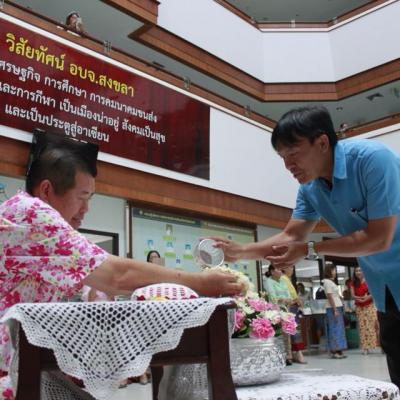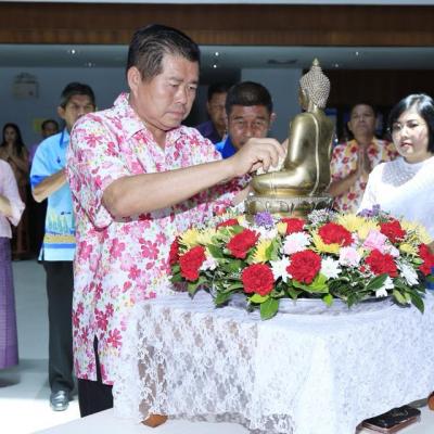 นายก อบจ.สงขลา สรงน้ำพระพุทธรูป เพื่อความเป็นสิริมงคล เนื่องในเทศกาลวันสงกรานต์ ณ ลานสำนักงานองค์การบริหารส่วนจังหวัดสงขลา