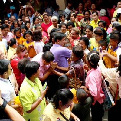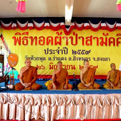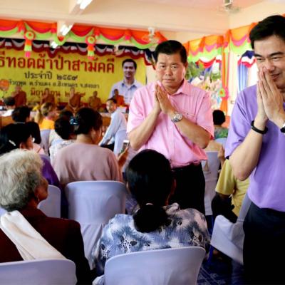 นายนิพนธ์ บุญญามณี นายก อบจ.สงขลา พร้อมด้วย อดีต ส.ส.จากพรรคประชาธิปัตย์ จังหวัดสงขลา ร่วมให้การต้อนรับ นายอภิสิทธิ์ เวชชาชีวะ หัวหน้าพรรค ปชป.และอดีตนายกรัฐมนตรี ในโอกาสเดินทางมาปฏิบัติภารกิจในจังหวัดสงขลา ที่อำเภอสิงหนคร โดยเป็นประธานทอดผ้าป่าสามัคคี ณ วัดห้วยพุด ต.รำแดง อ.สิงหนคร จ.สงขลา และพบปะกับประชาชนที่มาร่วมทำบุญทอดผ้าป่าสามัคคี อีกทั้งร่วมปลูกต้นไม้กับชุมชนที่บ้านรำแดง ซึ่งมีนายก อบต.รำแดง คณะผู้บริหาร กลุ่ม อสม.และประชาชนร่วมต้อนรับ ก่อนจะเดินทางต่อไปยังศูนย์ฟื้นฟูสมรรถภาพคนงานภาคใต้จังหวัดสงขลา ที่ตำบลปากรอ มีผู้อำนวยการและเจ้าหน้าที่ให้การต้อนรับ และรับฟังสรุปการทำงานของศูนย์ฯ