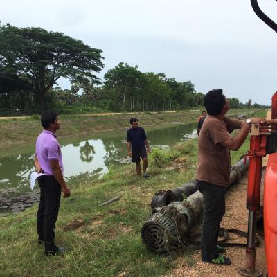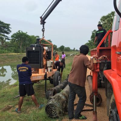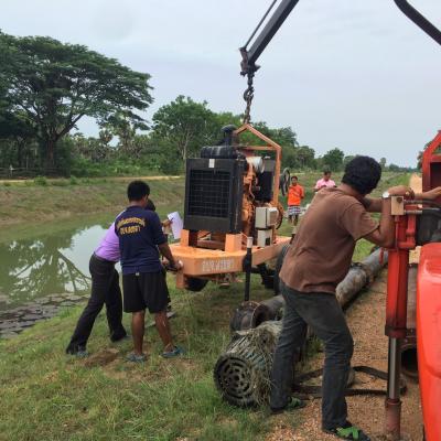 กองช่าง อบจ.สงขลา ทำการเคลื่อนย้ายเครื่องสูบน้ำ เพื่อช่วยเหลือเกษตรกรผู้ประสบปัญหาภัยแล้ง