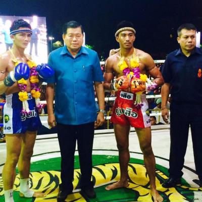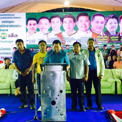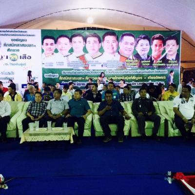 24 มิ.ย.59 (21.00 น.) นายก อบจ.สงขลา และนายกสมาคมกีฬาแห่งจังหวัดสงขลา ประธานจัดการแข่งขันศึกมวยปูนเสือ มวยไทยพันธ์แท้ ศึกสมิหลาสงขลา + ศึกมวยปูนเสือสัญจร + เเกียรคิเพชร 7 สี เป็นประธานในพิธีเปิดการแข่งขันชกมวยไทยมหากุศล ณ เวทีมวยชั่วคราวสนามฟุตบอลมหาวิทยาลัยราชภัฏสงขลา โดยมีนายประสงค์ บริรักษ์ นายกเทศบาลเมืองเขารูปช้าง และอุปนายกสมาคมกีฬาแห่งจังหวัดสงขลา พร้อมด้วยคณะกรรมการจัดการแข่งขันให้การต้อนรับ และได้รับเกียรติจาก นายธำรงค์ เจริญกุล (อดีต ผวจ.สข) ร่วมชมการแข่งขันชกมวยไทย ซึ่งการแข่งขันการชกมวยครั้งนี้ เป็นความร่วมมือระหว่างสมาคมกีฬาแห่งจังหวัดสงขลา ประธานชมรมมวยสมัครเล่นจังหวัดสงขลา และบริษัทปูนเสือ จำกัด และเป็นที่น่ายินดีที่ทั้งสามฝ่ายได้ร่วมกันจัดมวยไทยครั่งนี้ เพื่ออนุรักษ์ไว้ซึ่งศิลปแม่ไม้มวยไทย เพื่อลูกหลานได้มีโอกาสสืบทอดศิลปแม่ไม้มวยไทยต่อไปในอนาคต