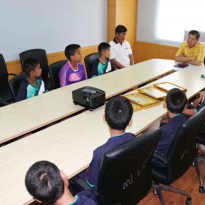 นักเรียนฟุตบอลเยาวชนที่ได้รางวัลชนะเลิศ เข้าพบนายก อบจ.สงขลา