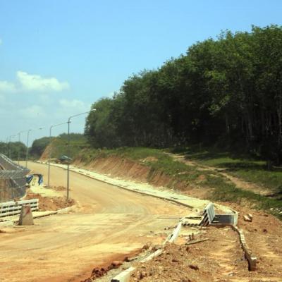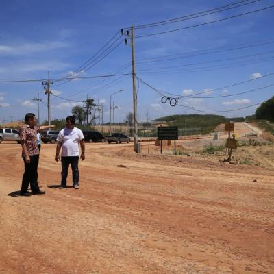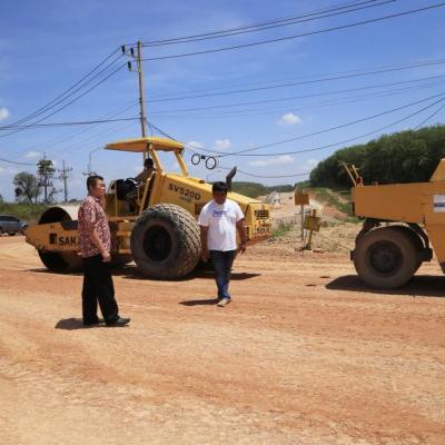นายก อบจ.สงขลา ลงพื้นที่ตรวจความคืบหน้า การก่อสร้างถนนเลียบชายแดนด่านสะเดาแห่งใหม่ที่ตำบลสำนักขาม อำเภอสะเดา จังหวัดสงขลา