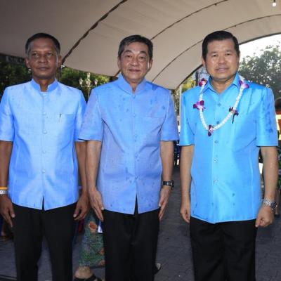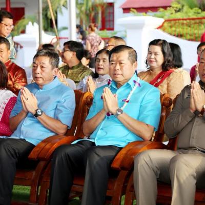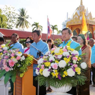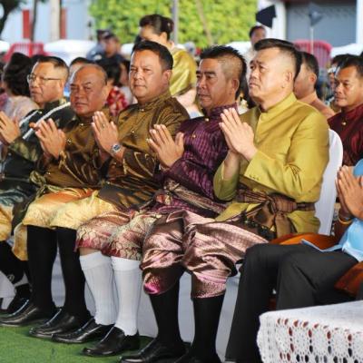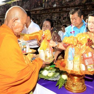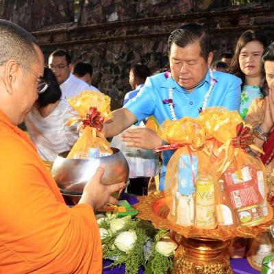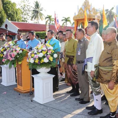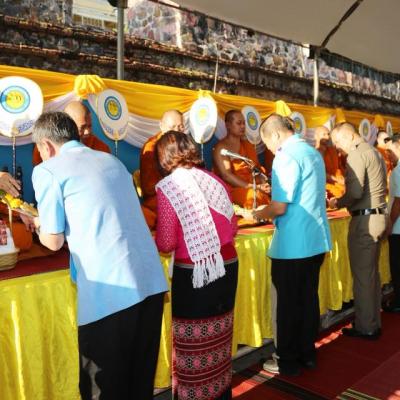 นายก อบจ.สงขลา พร้อมด้วยปลัดเทศบาลนครสงขลา ร่วมในพิธีทำบุญตักบาตร และรับน้ำพระพุทธมนต์จากพระสงฆ์