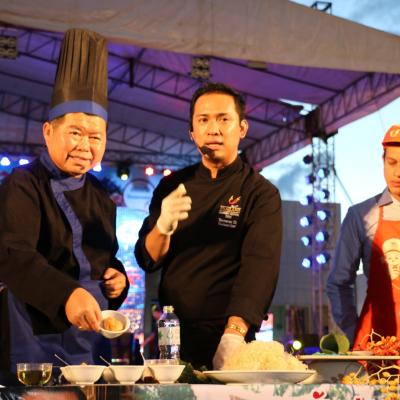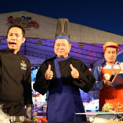 31 พ.ค.59 นายนิพนธ์ บุญญามณี นายก อบจ.สงขลา และ นายสุรพล กำพลานนท์วัฒน์ นายกสมาคมสมาพันธ์ธุรกิจการท่องเที่ยว จังหวัดสงขลา ร่วมกันปรุงแต่งรังสรรค์อาหารเมนูเลิศรส ภายใต้ชื่อเมนูเด็ด หมี่กรอบสองทะเล พร้อมด้วยกุนซือมืออาชีพอย่าง เชฟจากัวร์ ที่คอยแต่งแต้มการปรุงอาหารอย่างมืออาชีพ ในเทศกาลอาหารอร่อย สองทะเล ครั้งที่ 17 ณ เวทีสระบัว แหลมสมิหลา