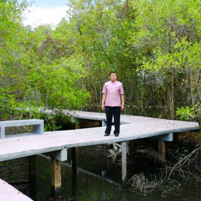 นายก อบจ.สงขลา ลงพื้นที่ติดตามการปรับปรุงสะพานทางเดินศึกษาธรรมชาติชีววิทยา และนิเวศวิทยาป่าชายเลน