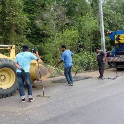 กองช่าง อบจ.สงขลา ลงพื้นที่ซ่อมถนนลาดยาง สายบ้านท่าไทร - บ้านบางเหรียง อ.บางกล่ำ จ.สงขลา