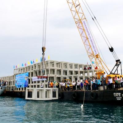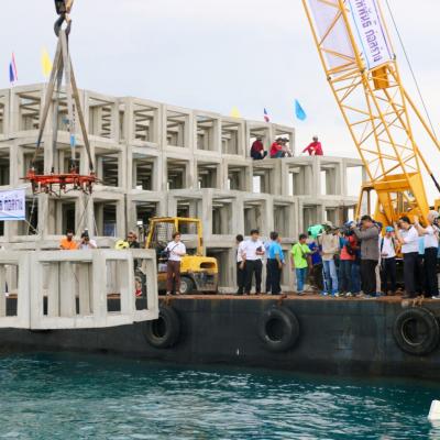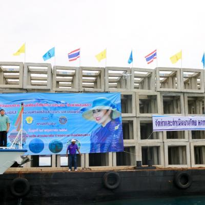 25 พ.ค.59 (08.00 น.) มูลนิธิสำนักงานทรัพย์สินส่วนพระมหากษัตริย์ ร่วมกับ กรมประมง จัดพิธีส่งมอบปะการังเทียมให้กับชาวประมง จังหวัดสงขลา โดยมี ฯพณฯ นายพลากร สุวรรณรัฐ องคมนตรี ได้เดินทางมาเป็นประธานในพิธีส่งมอบปะการังเทียมให้กับชาวประมง ณ บ้านปากบางนาทับ ต.นาทับ อ.จะนะ จ.สงขลา จำนวน 2,280 แท่ง ทำจากวัสดุที่ออกแบบเป็นแท่งคอนกรีตสี่เหลี่ยมจัตุรัส แบบโปร่งขนาดกว้าง ยาว สูง 1.5 เมตร เท่ากันทุกด้านใช้งบประมาณเป็นเงินทั้งสิ้น 12 ล้านบาท ซึ่งภายในงานมี นายทรงพล สวาสดิ์ธรรม ผู้ว่าราชการจังหวัดสงขลา พร้อมด้วย นายนิพนธ์ บุญญามณี นายก อบจ.สงขลา ข้าราชการ และเจ้าหน้าที่กรมเจ้าท่า กรมทรัพยากรทางทะเลและชายฝั่ง กรมประมง ผู้แทนองค์กรปกครองส่วนท้องถิ่น ชาวประมงพื้นบ้าน นักเรียน นักศึกษา ให้การต้อนรับ ด้วยพระมหากรุณาธิคุณของสมเด็จพระนางเจ้าสิริกิติ์ พระบรมราชินีนาถ ที่ทรงห่วงใยปัญหาของชาวประมงพื้นบ้าน จ.สงขลา จึงมีพระราชดำริฟื้นฟูทรัพยากรทางทะเลด้วยการวางแนวปะการังเทียมขึ้น เพื่อช่วยเหลือชาวประมงรายย่อยที่มีฐานะยากจนให้มีแหล่งจับสัตว์น้ำทำกินเลี้ยงชีพ สำนักงานทรัพย์สินส่วนพระมหากษัตริย์ จึงได้สนับสนุนงบประมาณการจัดสร้างปะการังเทียม และส่งมอบให้แก่กรมประมง เพื่อนำไปจัดวางในทะเลให้เป็นแหล่งที่อยู่อาศัยของสัตว์น้ำ และเป็นการสร้างอาชีพให้กับชาวประมงให้มีรายได้เพิ่มขึ้น