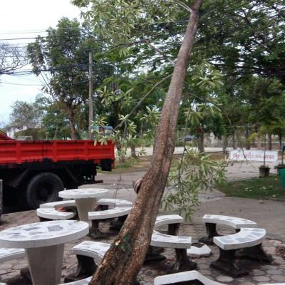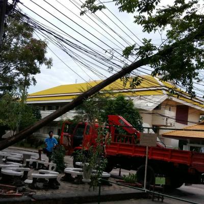 กองช่าง อบจ.สงขลา ลงพื้นที่ยกต้นไม้ที่ล้มทับสายไฟ ในบริเวณโรงเรียนนวมินทราชูทิศ ทักษิณ