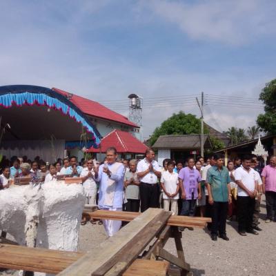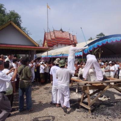 นายวิโรจน์ ทัฬทะวาสน์ ประธานในพิธีเททองหล่อทวดเพชร ที่วัดปรางแก้ว อ.คลองหอยโข่ง