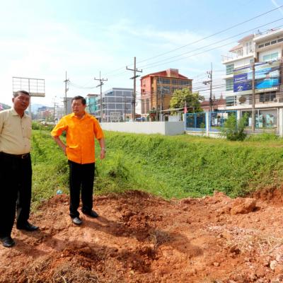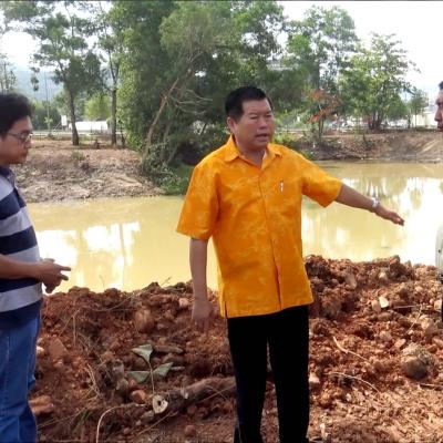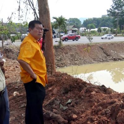 นายก อบจ.สงขลา ลงพื้นที่ดูการทำงานของเครื่องจักรกลในการขุดลอกคูระบายน้ำ บริเวณหน้าประตู109 มอ.