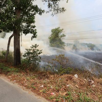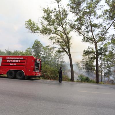 นายก อบจ.สงขลา ลงพื้นที่ในการดับไฟป่าริมถนนสายลพบุรีราเมศวร์