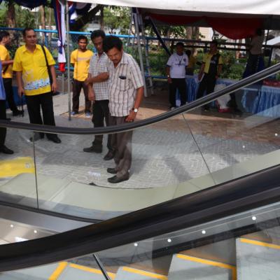 นายก อบจ.สงขลา ตรวจดูความเรียบร้อยโดยรอบ และระบบการทำงานของบันไดเลื่อน หน้า มอ.