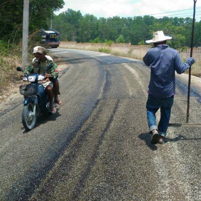 กองช่าง อบจ.สงขลา ลงพื้นที่ซ่อมแซมหลุมบ่อถนนลาดยางแอสฟัลท์ สายบ้านสะพานไม้แก่นตก - บ้านเกาะสะบ้า