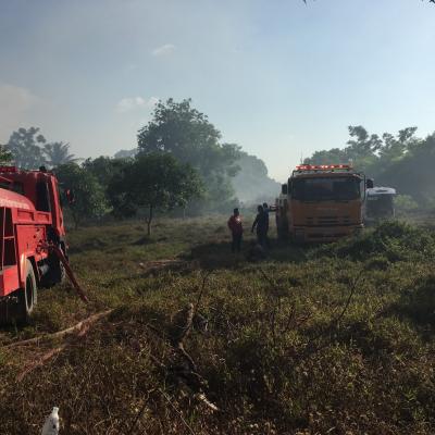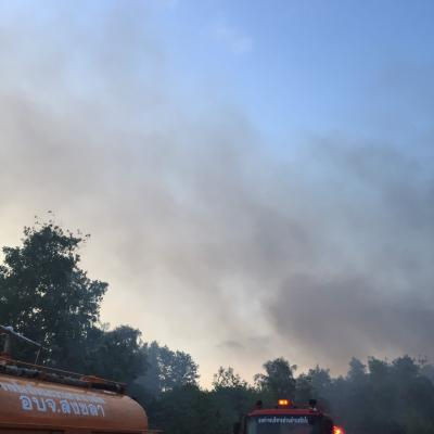 กองช่าง อบจ.สงขลา สนับสนุนรถบรรทุกน้ำดับเพลิง ช่วยเหลือเหตุไฟไหม้ป่า ตำบลชิงโค อำเภอสิงหนคร