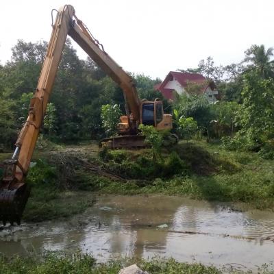 กองช่าง องค์การบริหารส่วนจังหวัดสงขลา ลงพื้นที่ขุดลอกคลอง บริเวณหน้าวัดโพธิ์ อบต.คลองหอยโข่ง