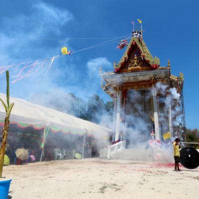 ซึ่งการจัดงานยกช่อฟ้าพระอุโบสถครั้งนี้ เกิดขึ้นจากการที่ทางวัดควนโส ร่วมกับพุทธบริษัท ได้ร่วมกันสร้างพระอุโบสถหลังใหม่ ทดแทนอุโบสถหลังเก่าที่ได้ชำรุดทรุดโทรมตามกาลเวลา ซึ่งขณะนี้ได้ก่อสร้างร่วม 80 เปอร์เซ็นต์แล้ว ทางวัดจึงได้ทำพิธียกช่อฟ้า ปิดทองฝังลูกนิมิตขึ้น จึงได้กำหนดจัดงานดังกล่าวขึ้นมา ท่ามกลางประชาชน ชมรมคนสงขลาจังหวัดภูเก็ต และพุทธบริษัท มาร่วมงานบุญในครั้งนี้อย่างคับคั่ง