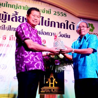 นายก อบจ.สงขลา กล่าวต้อนรับการประชุมใหญ่สามัญประจำปี 2558 สมาคมผู้เลี้ยงไก่ไข่ภาคใต้