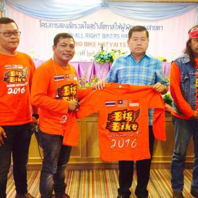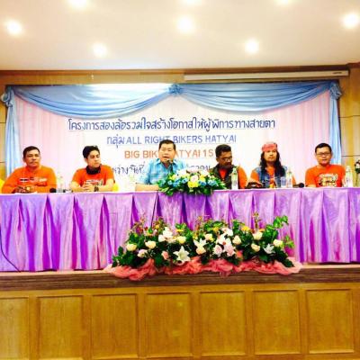 วันที่ 23 มกราคม 2559. เวลา 14.00 น. นายนิพนธ์ บุญญามณี นายก อบจ.สงขลา ประธานการแถลงข่าว โครงการสองล้อรวมใจสร้างโอกาสให้กับผู้พิการทางสายตา ณ ห้องลีลาวดี โรงแรมหาดใหญ่พาราไดซ์ ซึ่งทาง อบจ.สงขลา ได้ให้การสนับสนุนโครงการดังกล่าว โดยมีกลุ่ม บิ๊กไบด์จากมาเลเซีย และสิงคโปร์ เข้าร่วมในกิจกรรมครั้งนี้ระหว่างวันที่ 29 - 30 มกราคม 59 ทั้งนี้ เพื่อหาเงินสมทบทุนโดยมอบทุนดการศึกษาโรงเรียนการศึกษาคนตาบอดธรรมสากลหาดใหญ่ เพื่อเป็นการส่งเสริมผู้พิการทางสายตาและผู้ด้อยโอกาสทางสังคม และเพื่อเป็นการส่งเสริมการท่องเที่ยวในจังหวัดสงขลา