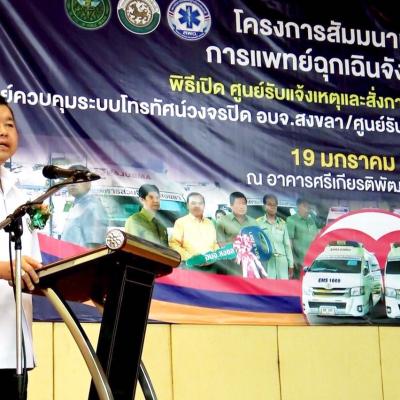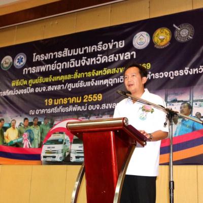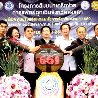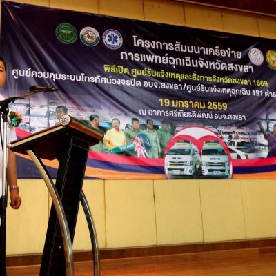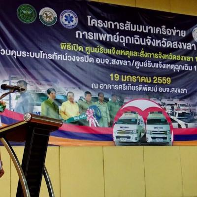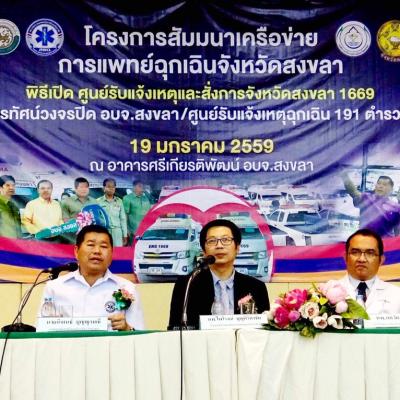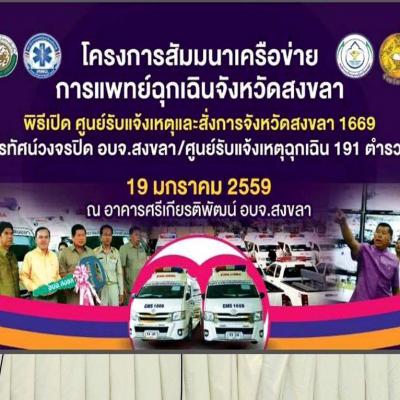 19 มกราคม 2559 นายนิพนธ์ บุญญามณี นายก อบจ.สงขลา กล่าวต้อนรับผู้เข้าร่วมงานแถลงข่าว พร้อมกล่าวรายงาน การเปิดศูนย์รับแจ้งเหตุ และสั่งการจังหวัดสงขลา 1669 ศูนย์ CCTV และศูนย์ 191 และเปิดการสัมมนาเครือข่ายการแพทย์ฉุกเฉินจังหวัดสงขลา ณ อาคารศรีเกียรติพัฒน์ องค์การบริหารส่วนจังหวัดสงขลา โดยมี นพ.ดร.ไพโรจน์ บุญศิริคำชัย รองเลขาธิการสถาบันการแพทย์ฉุกเฉินแห่งชาติ ประธานในพิธีพร้อมด้วย นพ.สรรพงษ์ ฤทธิรักษา นพ.สส.จ ผศ.นพ.ประสิทธิ์ วุฒิสุทธิเมธาวี หน.ภาควิชาเวชศาสตร์ฉุกเฉิน มอ. นายภควัต จุลทอง หน.ศูนย์นเรนทร จ.สงขลา พ.ต.อ.อลงกรณ์ สีมาวุฬ ผู้กำกับการ สภ.เมืองสงขลา หน่วยงาน หัวหน้าส่วนราชการ และท่านผู้มีเกียรติทุกท่าน ร่วมการเปิดศูนย์ดังกล่าวทั้ง 3 ศูนย์ ณ ใต้อาคารศรีเกียรติพัฒน์ ทั้งนี้ เพื่อเป็นการบูรณาการความร่วมมือการปฏิบัติการฉุกเฉินช่วยเหลือประชาชนร่วมกัน และให้ความช่วยเหลือประชาชนที่เจ็บป่วยฉุกเฉินได้อย่างครอบคลุมทุกพื้นที่อย่างมีประสิทธิภาพ ซึ่งเป็นการจัดทำบริการสาธารณะขององค์กรปกครองส่วนท้องถิ่น ตามอำนาจหน้าที่ และภารกิจที่ได้รับการถ่ายโอนเป็นไปอย่างมีประสิทธิภาพ และตอบสนองความต้องการของประชาชนในท้องถิ่นตามมาตรา ๑๒ (๒) (๑๕) และมาตรา ๒๑ วรรคสอง แห่งพระราชบัญญัติกำหนดแผน และขั้นตอนการกระจายอำนาจให้แก่องค์กรปกครองส่วนท้องถิ่น พ.ศ.๒๕๔๒ โดย องค์การบริหารส่วนจังหวัดสงขลา ได้ดำเนินงาน และบริหารจัดการการแพทย์ฉุกเฉินก่อนถึงโรงพยาบาล โดยจัดให้มีชุดปฏิบัติการครอบคลุมพื้นที่ โดยร่วมดำเนินงานกับเทศบาล องค์การบริหารส่วนตำบล หน่วยงานของกระทรวงสาธารณสุข และมูลนิธิ สำนักงานสาธารณสุขจังหวัดสงขลา โรงพยาบาลหาดใหญ่ โรงพยาบาลสงขลา โรงพยาบาลชุมชนในจังหวัดสงขลา โรงพยาบาลสังกัดกระทรวงกลาโหม โรงพยาบาลเอกชน และมหาวิทยาลัยสงขลานครินทร์ นอกจากนี้ ยังบูรณาการร่วมสำนักงานตำรวจแห่งชาติ และหน่วยงานต่างๆ ในการทำให้เกิดศูนย์ดังกล่าว ซึ่งจะเป็นประโยชน์ต่อประชาชน และนักท่องเที่ยวในจังหวัดสงขลา เมื่อเกิดเหตุด่วนเหตุร้าย เพลิงไหม้ ผู้เจ็บป่วยฉุกเฉิน ผู้ประสบภัย สามารถได้รับการช่วยเหลืออย่างปลอดภัย อันจะนำไปสู่พัฒนาคุณภาพชีวิตที่ดีขึ้นของประชาชนที่อยู่ในจังหวัดสงขลา