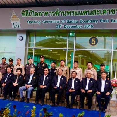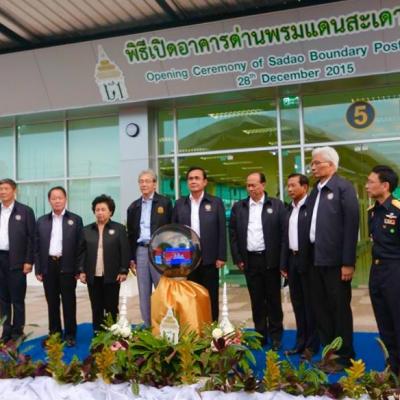 (28 ธ.ค.2558) ที่บริเวณด่านพรมแดนสะเดา อ.สะเดา จ.สงขลา พลเอกประยุทธ์ จันทร์โอชา นายกรัฐมนตรี และคณะเดินทางตรวจติดตามความคืบหน้าการเปิดด่านพรมแดนสะเดา อ.สะเดา จ.สงขลา พร้อมเปิดอาคารหลังใหม่ เพื่อรองรับการให้บริการประชาชนและนักท่องเที่ยวที่เพิ่มขึ้นเป็นจำนวนมาก รองรับประชาคมเศรษฐกิจอาเซียน โดยมี นายกุลิศ สมบัติศิริ อธิบดีกรมศุลกากร นายทรงพล สวาสดิ์ธรรม ผู้ว่าราชการจังหวัดสงขลา นายอนุชิต ตระกูลมุทุตา รองผู้ว่าราชการจังหวัดสงขลา นายนิพนธ์ บุญญามณี นายกองค์การบริหารส่วนจังหวัดสงขลา องค์กรปกครองส่วนท้องถิ่น หัวหน้าส่วนราชการ ข้าราชการ เจ้าหน้าที่ และประชาชน ร่วมให้การต้อนรับจำนวนกว่าพันคน ท่ามกลางการรักษาความปลอดภัยอย่างเข้มงวด