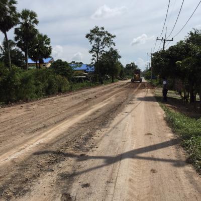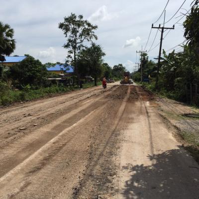 กองช่าง อบจ. ส่งเครื่องจักรซ่อมแซมถนนสายบ่อป่า ชะเล้ บางเขียด และสำรวจออกแบบเพื่อเร่งก่อสร้างเป็นถนนคอนกรีตแทนลาดยางที่รับน้ำหนักรถไม่ไหว พร้อมดำเนินการทันที