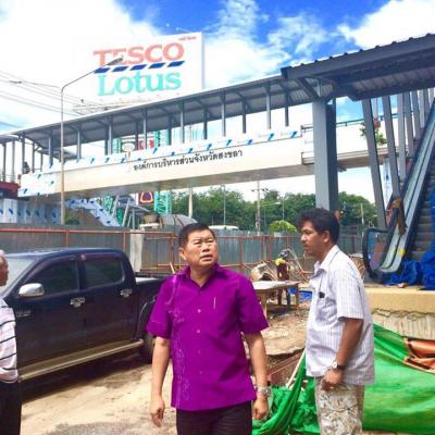 นายก อบจ.สงขลา ลงพื้นที่ติดตามความคืบหน้าโครงการก่อสร้างบ้นไดเลื่อนสะพานลอย หน้า มอ.หาดใหญ่