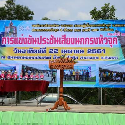22 เมษายน 2561 นายนิพนธ์ บุญญามณี นายกองค์การบริหารส่วนจังหวัดสงขลา ประธานในพิธีเปิดโครงการแข่งขันประชันเสียงนกกรงหัวจุก ประจำปี 2561 ณ สนามลานเอนกประสงค์ข้างห้างโลตัส สาขาจะนะ อ.จะนะ จ.สงขลา โดยมีประธานชมรมผู้เลี้ยงนกกรงหัวจึกสงขลา คณะกรรมการชมรมนกกรงหัวจุกจังหวัดสงขลา สมาชิกผู้เลี้ยงนกกรงหัวจุก และประชาชนทั่วไปเข้าร่วมในพิธีเปิด โดยที่องค์การบริหารส่วนจังหวัดสงขลา ร่วกับชมรมผู้เลี้ยงนกกรงหัวจุกจังหวัดสงขลา และชมรมผู้เลี้ยงนกกรงหัวจุก 4 อำเภอ ได้เล็งเห็นความสำคัญของการเลี้ยงนกกรงหัวจุก ซึ่งถือเป็นส่วนหนึ่งของวิถีการดำรงชีวิตของชาวสงขลา และจังหวัดใกล้เคียง อีกทั้งยังเป็นการช่วยกระตุ้นการท่องเที่ยว และเศรษฐกิจของจังหวัดสงขลาอีกทางหนึ่ง นอกจากนั้นแล้วยังเป็นการสร้างอาชีพ และเพิ่มรายได้ให้กับผู้ประกอบอาชีพเพาะเลี้ยงนกกรงหัวจุก และอาชีพที่เกี่ยวข้องอาทิ อาชีพทำกรงนก ผลิต และจำหน่ายอาหารนกและอุปกรณ์ต่างๆ