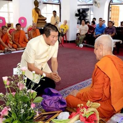 นายก อบจ.สงขลา ถวายกระเช้าสุขภาพ เนื่องในงานทำบุญเจริญอายุวัฒนมงคล 89 ปี แด่พระเดชพระคุณ พระราชศีลสังวร