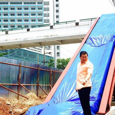 นายก อบจ.สงขลา ติดตามความคืบหน้าการก่อสร้างบันไดเลื่อนสะพานลอยหน้า มอ.