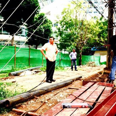 นายนิพนธ์ บุญญามณี นายกองค์การบริหารส่วนจังหวัดสงขลา ติดตามความคืบหน้าการก่อสร้างบันไดเลื่อนสะพานลอย บริเวณหน้าโรงพยาบาล มหาวิทยาลัยสงขลานครินทร์ เพื่ออำนวยความสะดวกให้แก่ผู้ที่มารับบริการโดยเฉพาะผู้สูงอายุ