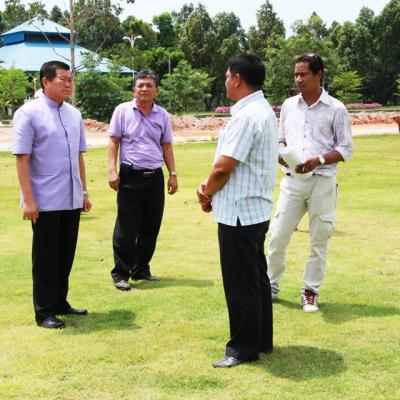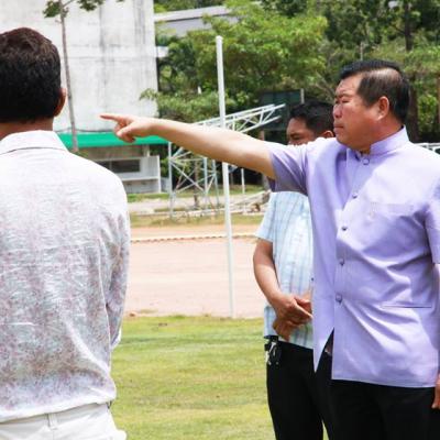 ลงพื้นที่ตรวจดูความคืบหน้าการก่อสร้างสนามฟุตบอลและปรับปรุงอาคารของโรงอาหารของ รร.เกาะแต้วพิทยาสรรค์