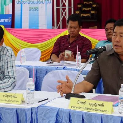 วันที่ 14 พฤษภาคม 2558 นายนิพนธ์ บุญญามณี นายกองค์การบริหารส่วนจังหวัดสงขลา พร้อมด้วย คณะผู้บริหาร สมาชิกสภา อบจ.สงขลา ผอ.กอง หัวหน้าส่วน เปิดเวทีเสวนาประชาคม เพื่อรับฟังความคิดเห็นของพี่น้องประชาชน และแนวคิดที่จะพัฒนาท้องถิ่นแบบยั่งยืน ณ ศาลาประชาคมอำเภอคลองหอยโข่ง