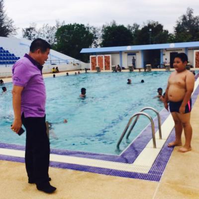 นายก อบจ.สงขลา เยี่ยมแวะทักทาย ผู้มาใช้บริการสระว่ายน้ำ