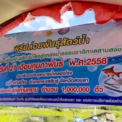 เมื่อวันที่ 27 ก.พ. 58 นายนิพนธ์ บุญญามณี นายก อบจ.สงขลา เป็นประธานในพิธีปล่อยพันธุ์สัตว์น้ำลงสู่แหล่งน้ำธรรมชาติ โดยทางอบจ.สงขลา ร่วมกับส่วนราชการ อาทิ ศูนย์วิจัยและพัฒนาประมงน้ำจืด คลองหอยโข่ง และศูนย์วิจัยและพัฒนาประมงน้ำจืด พัทลุง ได้อุดหนุนงบประมาณศูนย์ละ 1,000,000. บาท ดำเนินการผลิตพันธุ์สัตว์น้ำ เพื่อปล่อยลงสู่แหล่งธรรมชาติ โดยครั้งนี้ได้รับการสนับสนุนจากศูนย์วิจัยและพัฒนาประมงน้ำจืดสงชลา อำเภอคลองหอยโข่ง ส่งพันธุ์กุ้งก้ามกราม จำนวน 1,000,000 ตัว พันธฺุปลาน้ำจืด 200,000 ตัว ณ บริเวณประตูระบายน้ำคลองโรง อำเภอกระแสสินธุ์ จังหวัดสงขลา