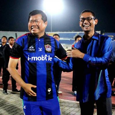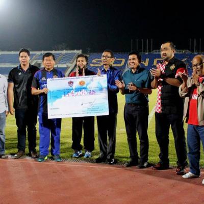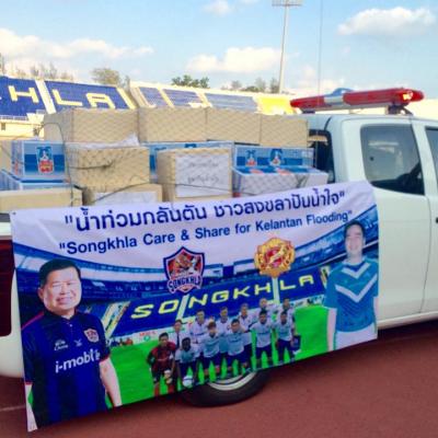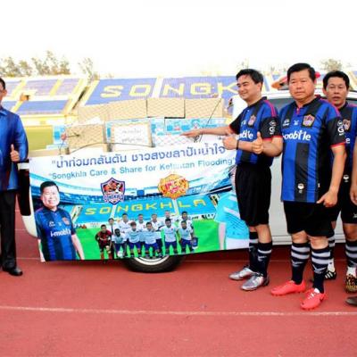 วันที่ 17 มกราคม 2558 นายนิพนธ์ บุญญามณี นายก อบจ.สงขลา ร่วมกับจังหวัดสงขลาและพรรคประชาธิปัตย์ จัดการแข่งขันฟุตบอลนัดพิเศษด้วยกัน ๒ คู่ โดยคู่แรกเป็นการแข่งขันฟุตบอลคู่พิเศษก่อนเวลา ระหว่างทีมวีไอพีจังหวัดสงขลา นำโดยนายนิพนธ์ บุญญามณี นายกองค์การบริหารส่วนจังหวัดสงขลา พบกับทีมจากพรรคประชาธิปัตย์ ซึ่งนำโดยนายอภิสิทธิ์ เวชชาชีวะ หัวหน้าพรรค ในเวลา ๑๖.๐๐ น. และคู่อุ่นเครื่องระหว่างทีมสโมสรฟุตบอลสงขลายูไนเต็ด พบทีมจากรัฐกลันตัน เอฟ เอ เป็นคู่ที่สอง ซึ่งการแข่งขันดังกล่าวทั้งสองคู่เกิดขึ้นจากการที่องค์การบริหารส่วนจังหวัดสงขลา ร่วมกับจังหวัดสงขลาและพรรคประชาธิปัตย์ ต้องการจัดหาเงินตลอดจนข้าวสาร อาหารแห้งไปช่วยเหลือประเทศมาเลเซีย ที่รัฐกลันตัน โกตาบารู ซึ่งเกิดอุทกภัยอย่างร้ายแรงในช่วงที่ผ่านมา ซึ่งเป็นข่าวไปทั่วโลก โดยการจัดครั้งนี้มีขึ้นที่สนามติณสูลานนท์ จังหวัดสงขลา