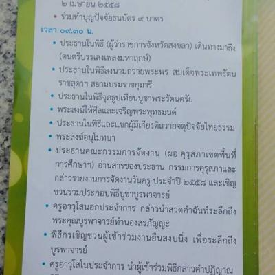 คำขวัญวันครู เกียรติครูยิ่งใหญ่ น้อมใจบูชา เลิศล้ำคุณค่า ศรัทธาพระคุณ(16 ม.ค) นายนิพนธ์ บุญญามณี นายกองค์การบริหารส่วนจังหวัดสงขลา ร่วมจัดงาน "วันครู" ครั้งที่ 59 ณ หอประชุม 100 ปี มหาวชิราวุธ โรงเรียนมหาวชิราวุธ สงขลา