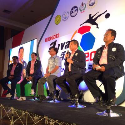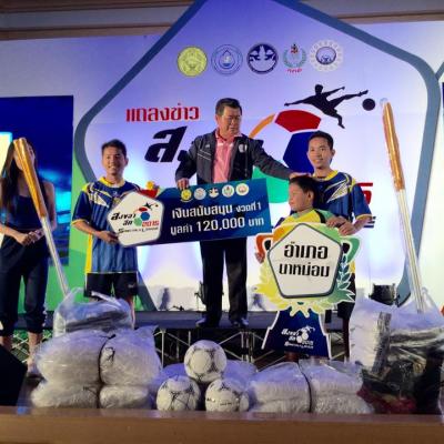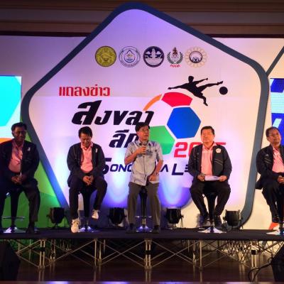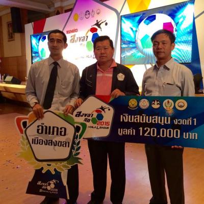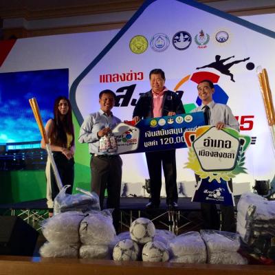 นายก อบจ.สงขลา ร่วมงานเเถลงข่าวการเเข่งขันฟุตบอลประชาชน สงขลาลีก จังหวัดสงขลา ประจำปี 2558